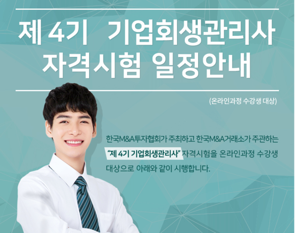 한국M&A투자협회에서 주최하고 한국M&A거래소가 주관하는 기업회생관리사의 일정이 정해졌다.